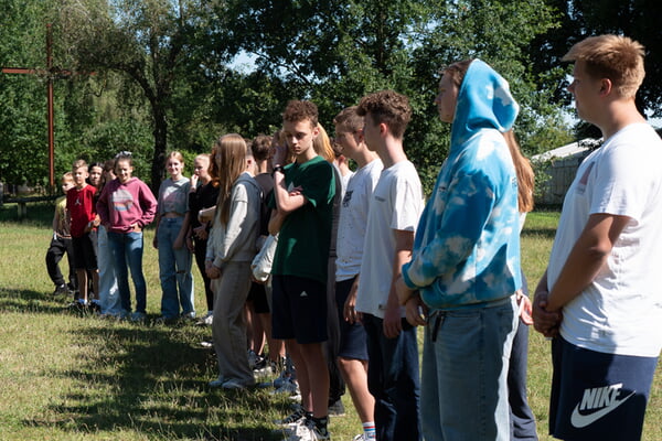 Und so ging es vom 28.07.2024 bis 02.08.2024 mit knapp 20 Jugendlichen in die Perspektivfabrik nach Mötzow. Und das mit dem Zug ... Was soll da schon schiefgehen? Tatsächlich verlief die Hinfahrt reibungslos. Wir lernten uns langsam kennen und verwickelten uns in erste Gespräche. In der Perspektivfabrik angekommen, bezogen wir die Zimmer und lernten die anderen aus Berlin und Groß Kreutz mithilfe kleiner Spiele kennen.
